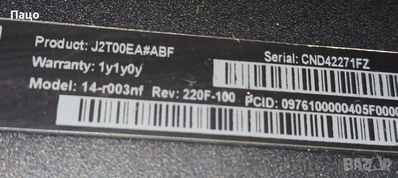 HP 14-R003 / INTEL N2830/4GB RAM/внос /тестван е с универсално зарядно ,има снимки/с работещо дъно е/Продава се само целия/Цената е твърда,символична