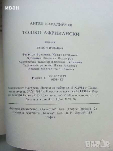 Тошко Африкански - Ангел Каралийчев - 1982г. → Обява 45607584