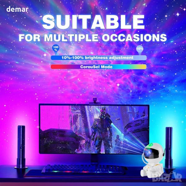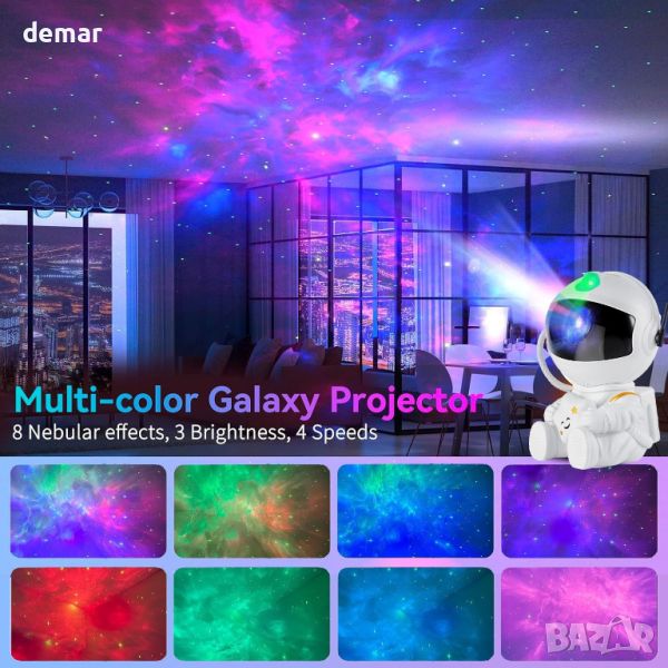 Впуснете се в хипнотизиращо космическо пътешествие с Pasun Galaxy Projector, който ви пренася в дълбините на космоса с реалистичната си проекция на сложни мъглявини и мигащи звезди. Персонализирайте атмосферата си с регулируема яркост и функция за завъртане на 360 градуса, което ви позволява да създадете перфектната атмосфера за всеки повод. Насладете се на безшумна работа и удобна функция за дистанционно управление, което улеснява регулирането на цветовете, яркостта и режимите от комфорта на вашия диван или легло. Неговото гъвкаво разположение и практичен дизайн го правят подходящ за всяко пространство, от спални до офиси, повдигащи стаи за игри, домашно кино, бюра за учене и много повече с хипнотизиращия си блясък. Този уникален проектор за астронавти служи като идеален подарък както за деца, така и за космически ентусиасти, предлагайки не само завладяващо изживяване на звездното небе, но и зашеметяващо произведение на декоративното изкуство. Присъединете се към нас в едно космическо пътешествие, една проекция наведнъж.