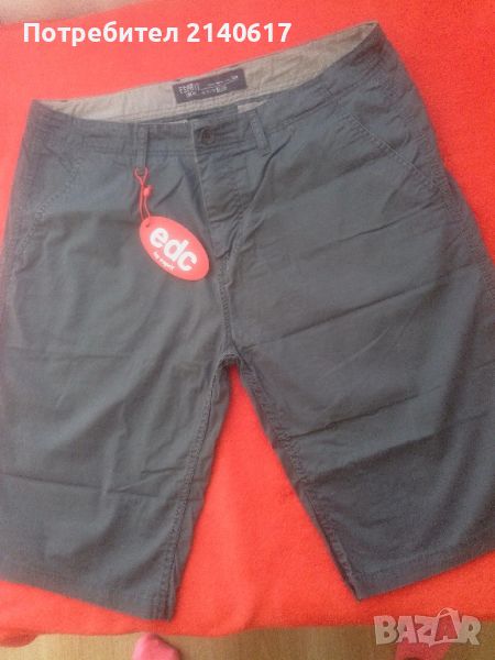 Чисто нови бермуди ESPRIT в цвят графит, отпред - италиански джобове, отзад- вътрешни. Закопчаване- с цип. Половинка талия- 51 см, половинка ханш- 62 см, крачол- 33 см. С преглед и тест.