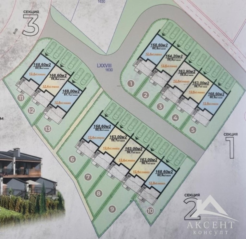 Къща 13 РЗП 230.10 кв.м., двор 194.40 кв.м.