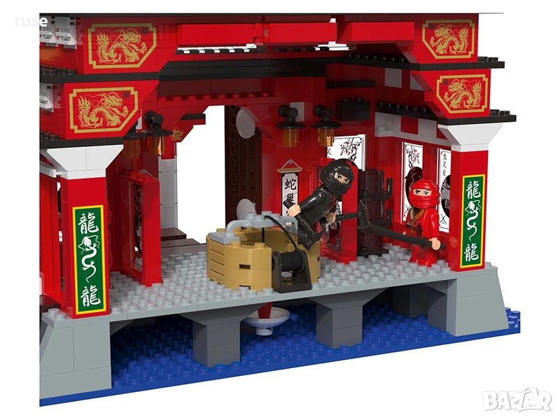 - Приключенски Нинджа храм, разгъващ се в много варианти, стойка за оръжие, висящ мост и мощна отбрана на входа