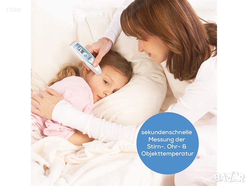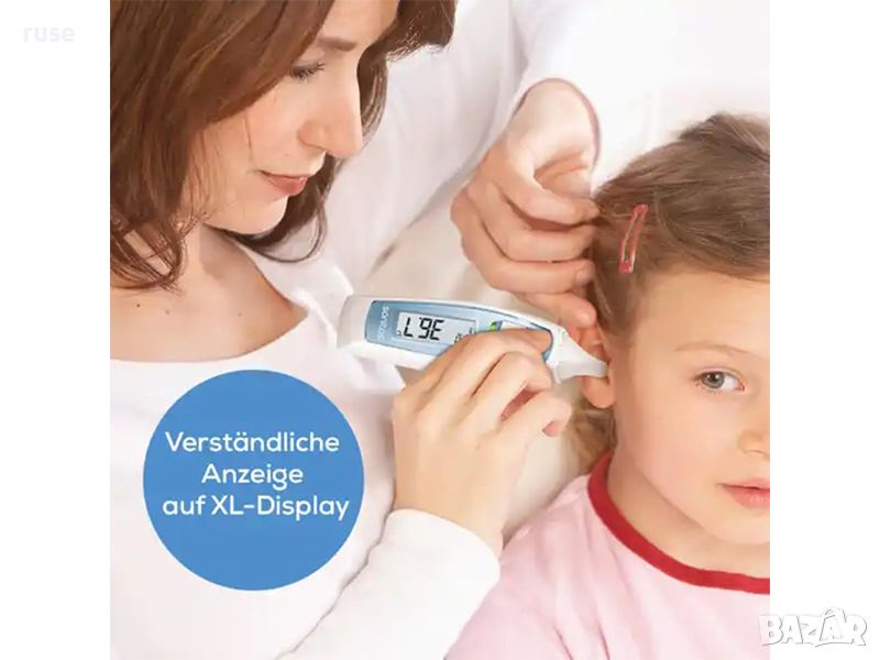 Може да измервате телесната температура в ухото, или на челото за секунди, а същотемпературата на повърхности и течности. С цветна индикация и аларна за висока температура или треска.