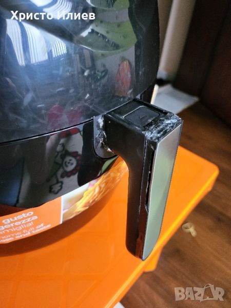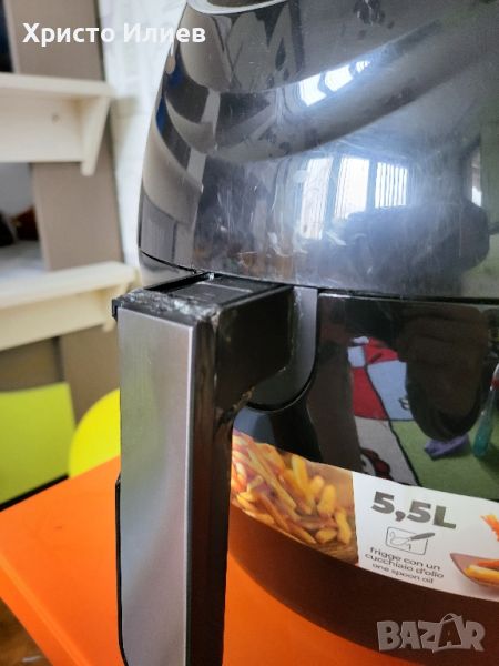 Има следи от употреба отвътре. Отвън няма забележки. Кошницата е нова, но дръжката пристигна с транспортен дефект и е залепена (поправена) По никакъв начин не оказва влияние на работата на уреда. Има приложени реални снимки.✔Сензорен екран✔ 1800W мощност✔ Капацитет 5,5 литра✔ 7 автоматизирани програми на готвене✔ Макс. температура от 200 ° С✔ 80% по-малко мазнини✔ Готвене с една лъжичка мазнина✔ Незалепващо покритие на кошницатаС фритюрника с горещ въздух Airy Fryer XXL на Ariete можете да пържите всяко ястие, дори в големи количества, като използвате само една лъжичка мазнина, за да получите здравословно и вкусно пържене едновременно.Благодарение на 5,5-литровата XXL кошница с Airy Fryer XXL можете да приготвите до 2,5 кг пържени картофи наведнъж !Приготвяйте пържени картофки, крокети, риба, месо и много други храни, както замразени, така и пресни , благодарение на 7-те предварително зададени режима на готвене .Фритюрникът готви благодарение на високотемпературния въздух , до 200 ° , който циркулира с максимална скорост и 360 ° ротация вътре в камерата за готвене. По този начин гарантира равномерно разпределение на топлината. Точно горещият въздух позволява на храните да се готвят равномерно и образува хрупкава златиста коричка отвън.Благодарение на горещия въздух няма да е необходимо да добавяте много мазнина, за да получите вкусно пържене. Една лъжица ще бъде достатъчна! По този начин ще внесете по-леки и здравословни, но вкусни храни на масата за цялото семейство. AIRY FRYER XXL готви бързо, здравословно и в големи количества, но ползите от него не спират дотук!Фритюрникът е проектиран така, че да не допуска пушек и лоши миризми в къщата : когато приготвяте пържена риба или месо, няма да се притеснявате от миризмата на пържено, тъй като въздушното готвене на Airy Fryer XXL не отделя миризмата на дим, типична за фритюрниците .И накрая, фритюрникът е лесен за почистване благодарение на подвижната незалепваща кошница и има ниско въздействие върху околната среда, тъй като не произвежда отработени мазнини , които са едни от най-големите замърсители на околната среда.