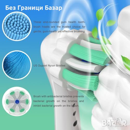 Здравословно почистване: Заоблени върхове на влакната за нежно и ефективно почистване, предпазващи венците и емайла