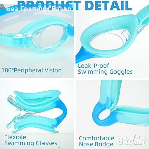 Нови 2 броя Детски Очила за Плуване UV Защита Анти-мъгла Ергономични 3-16 години