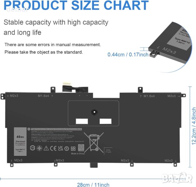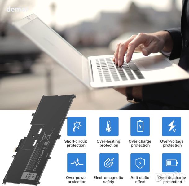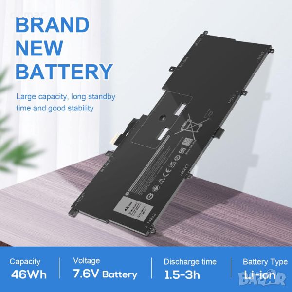 Тип батерия: Li-polymer, Напрежение: 7,6 V, Клетка: 4 клетки, Капацитет: 46 Wh Съвместим с: NNF1C, HMPFH, 0HMPFH, NP0V3, P71G, P71G001| XPS 13 9365-серия, XPS 13 9365 2-в-1 2017, XPS 13-9365-D1605TS, XPS 13-9365-D1805TS, XPS 13-9365-D2805TS, XPS 13-9365-D3605TS, XPS 13-9365-D380 5TS , XPS 13-9365-D3805TS, XPS 13-9365-D4605TS батериите са сертифицирани по UL/CE/FCC/RoHS за безопасност и са оборудвани с различни функции за безопасност, включително защита от късо съединение, прегряване и претоварване. Висококачествени клетки клас А. Зарежда бързо. По-дълго време за разреждане. Постоянна мощност и ниска консумация на енергия. Повече от 500 цикъла на разреждане.