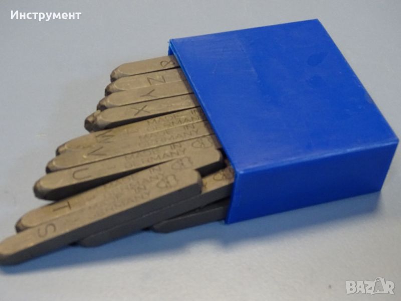Предлагаме нов, оригинален немски комплект шлосерски букви-латиница производство на Gravurem.