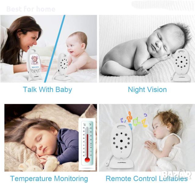 【2.4GHz FHSS технология с 2.0" LCD】-- Преносим, компактен бебефон, оборудван с 2.4GHz технология, която позволява на родителите да носят цифров екран със себе си. Яркият 2"HD LCD цветен видео екран дава ясна зона за гледане. със сигурност винаги ще знаете какво се случва в стаята на вашето бебе