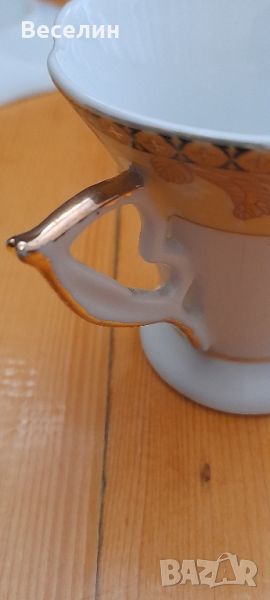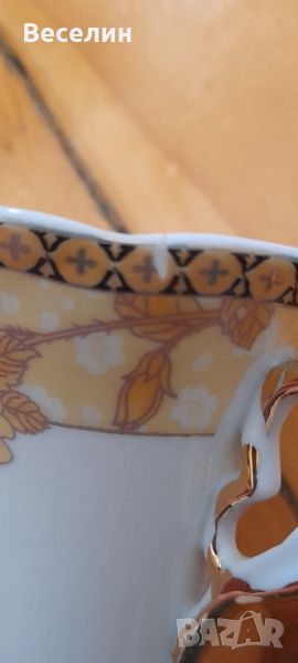 Красив дизайн ръчно изработен с маркировка златен кант чинийка диаметър 11 см чашка височина 7 см вместимост 0,60 мл за късо кафе