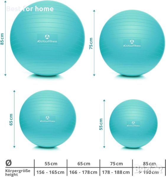 ✅ ТОПКА ЗА ФИТНЕС: #DoYourFitness x World Fitness топка за фитнес »Orion« е идеалният фитнес аксесоар за многостранна и ефективна тренировка на цялото тяло. Можете да използвате топката като седалка в офиса си за стабилизиране на гръбнака. Топката за упражнения се предлага в различни размери и цветове (сребристо, лилаво, слънчево жълто, тъмно зелено, ментово зелено, черно, розово, оранжево, небесно синьо, синьо, червено, тюркоаз). Включително ръчна помпа. Без спукване благодарение на системата против спукване. Максимална товароносимост 150 кг.