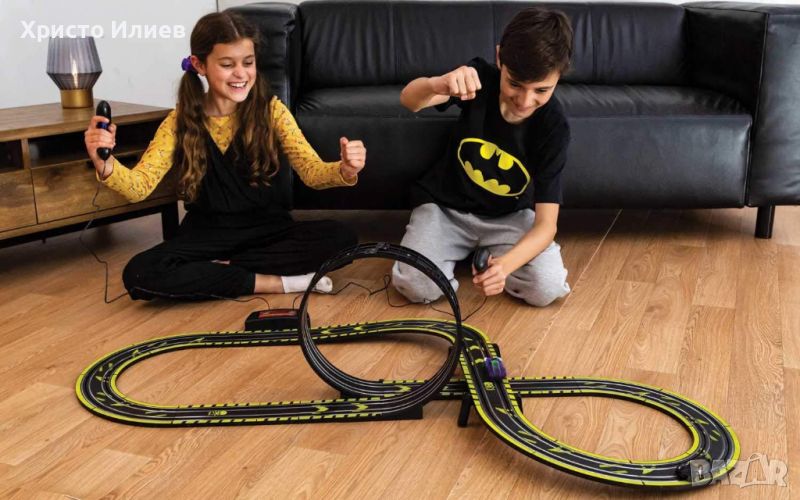 Scalextric Състезателна писта с коли Батман и Джокера Аутобан с лупинг Batman Батмобил