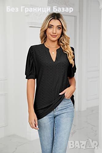Нов Летен Топ с V-образно Деколте и Пухкави Ръкави Дамска Тениска Блуза