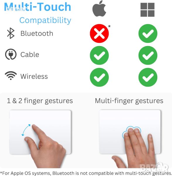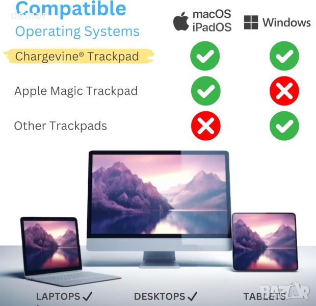 Chargevine® Wireless Multi-Touch Trackpad, съвместим с устройства с Windows и Apple