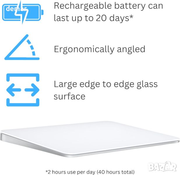 Безжичният тракпад Chargevine предлага безпроблемна интеграция както с Mac, така и с Windows системи, включващ мултитъч Bluetooth поддръжка за различни жестове като плъзгане, превъртане, щракване и мащабиране. Той се свързва бързо чрез Bluetooth за чисто, безжично работно пространство и е проектиран за преносимост и комфорт със своята тънка, лека конструкция. Издръжлив и създаден да издържи, той включва издръжлива батерия, което го прави идеален избор за професионалисти и случайни потребители, търсещи алтернатива с висока производителност на Apple Magic Trackpad 3.