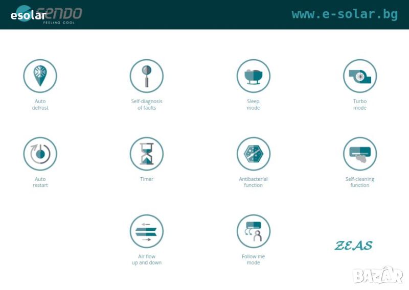 Насладете се на най-добрата стойност за парите си, предлагана от климатикът Zeas на Sendo. Благодарение на специалната инверторна технология и екологичния хладилен агент R32 спестявате до 40% от ценната енергия, без това да намалява охлаждането и енергийната ефективност на климатика.
