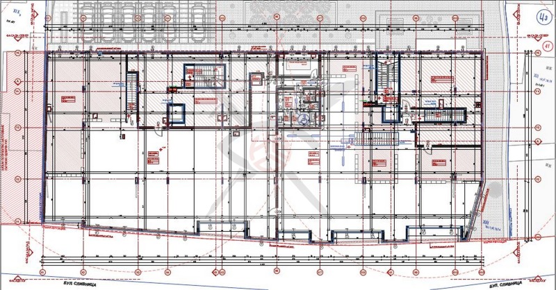 РАЗПРЕДЕЛЕНИЕ: Имотът разполага с площ от 1250 кв.м., разпределна в еднопространствено помещение и санитарни възли. Офисът може да бъде преграден по желание на новият му собственик.