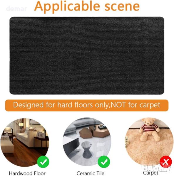 офис столовете стабилно на място, без да се пързалят, като същевременно предпазва подовете от драскотини, мръсотия и щети, причинени от тежки мебели. Лесен е за инсталиране без допълнителни инструменти - просто отстранете защитното фолио и го поставете върху чиста повърхност. Постелката също така е лесна за почистване и премахване, без да оставя никакви остатъци, въпреки че не трябва да се излага на пряка слънчева светлина, за да запази качеството си на залепване.