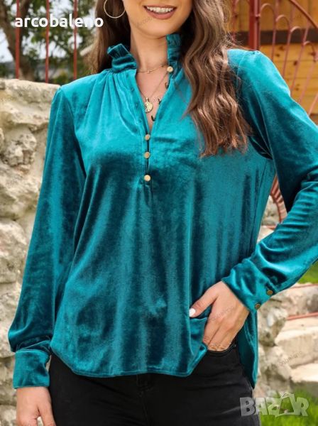 Тази нова дамска риза разполага с модерна яка и дълги ръкави, което я прави универсален избор за всеки повод. Изработена от 100% полиестер, този риза е едновременно стилна и удобна. Едноцветният дизайн добавя нотка изтънченост към вашия външен вид. Перфектна за наслояване или самостоятелно носене, това горнище е задължително за гардероба на всяка жена.