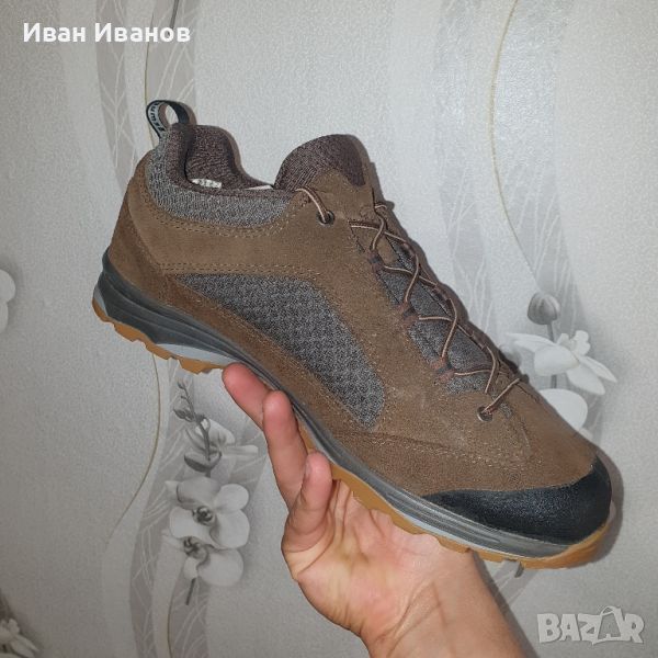 Обувки Hanwag Barcas GTXИзползвани броени пъти , като нови , без следи и забележки . Цена по магазините около 400 лева .Стабилна и водоустойчива нископрофилна обувка със спортен дизайн. Характеристики:Меки текстилни маншети за допълнителен комфортЗащитно кожено капаче на езикаИновативна подметка със структурата на медена пита, която допринася за значително намаляване теглото на последнатаДълготрайна водоустойчива и дишаща GORE-TEX мембрана Barcas от Hanwag е удобна и добре оборудвана ниска обувка за ходене, която ще защити крака ви в много ситуации. Тази обувка има горна част от кожа набук и текстил Cordura®, което ще направи обувката еластична и ще гарантира, че кракът ви е защитен отгоре. За още по-голяма защита на пръстите на краката има защитно гумено бомбе. Материалът Gore-Tex е използван за подплата на обувката, което гарантира, че краката ви ще останат сухи по време на дъждовен душ, но че влагата може да се отцеди, така че краката ви ще се чувстват свежи за по-дълго време. Гумената външна подметка гарантира, че ударите се абсорбират добре и мръсотията не залепва между профила.Ръководство за размери на HanwagHanwag работи с определени размери обувки. Можете да използвате нашето ръководство за размери по-долу, за да определите размера, от който се нуждаете. Забележка: Размерите и размерите са само ориентировъчни и понякога могат да се различават. HANWAG използва специфични аксесоари за обувки, например тясно прилягане, широко прилепване или прилягане Bunion. Ако обувката на HANWAG е проектирана със специална кройка, това се споменава в заглавието/описанието на продукта. Ако не се споменава конкретен тип пасване, тогава можете да приемете, че въпросната обувка има стандартно/средно пасване. HANWAG Narrow fit е подходящ за тези с по-малка ширина на крака, HANWAG Wide fit е подходящ за тези с по-голяма ширина на стъпалото, а HANWAG Bunion fit е подходящ за хора, чийто палец на крака е изкривен и се огъва към другите им пръсти (Hallux Valgus). При преходи и туризъм е от жизненоважно значение обувките ви да стоят правилно и удобно. Петата ви трябва да стои сигурно отзад, а пръстите ви трябва да имат достатъчно място отпред. Можете да проверите това, като обуете обувките, без да завързвате връзките. Ако изглежда, че има твърде много място отстрани или че е малко хлабав, значи петата е твърде широка за краката ви. Основен съвет, за да проверите дали една обувка е правилният размер за вас, е да видите дали има достатъчно място, за да поставите пръста си между върха на обувката и пръстите на краката. Ако няма достатъчно място, тогава обувката е твърде голяма; важно е да имате това пространство, за да не удряте пръстите на краката си в обувката, когато вървите надолу.