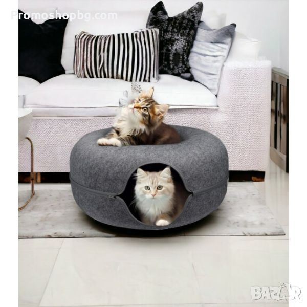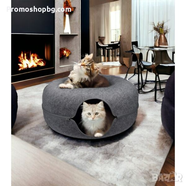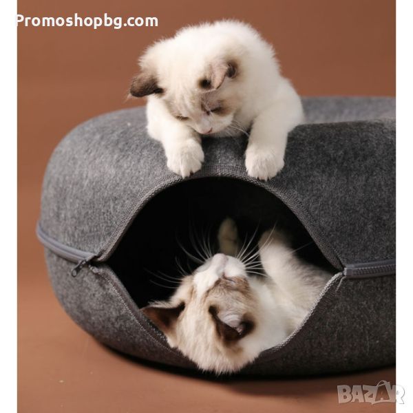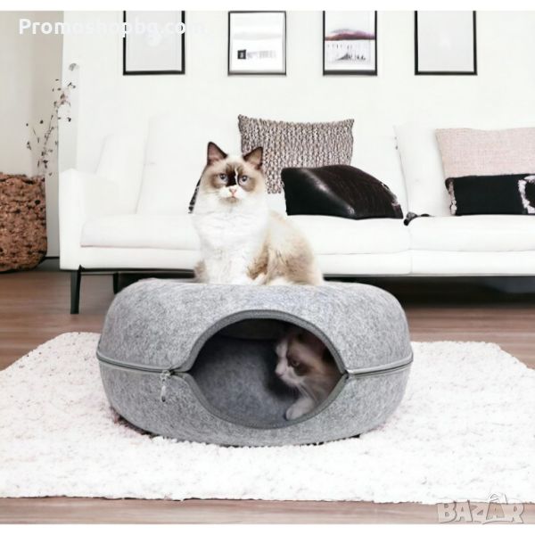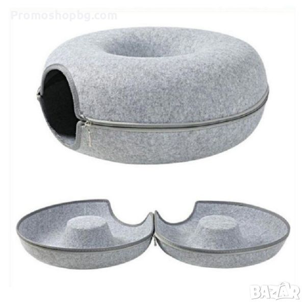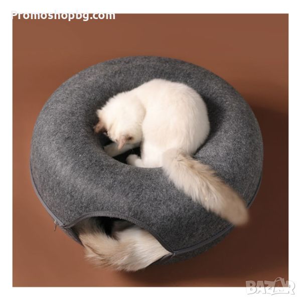 ДВОЙНА ФУНКЦИЯ - Легло и забавно скривалище. Продуктът е изработен е от двуслоен композитен материал във формата на поничка, за да задоволи нуждите и желанията на котките да влизат във всевъзможни отвори за игра и чувство на безопасност. Дизайн позволява на друга котка да си почива отгоре, като по този начин леглото може да се използва едновременно от няколко котки.