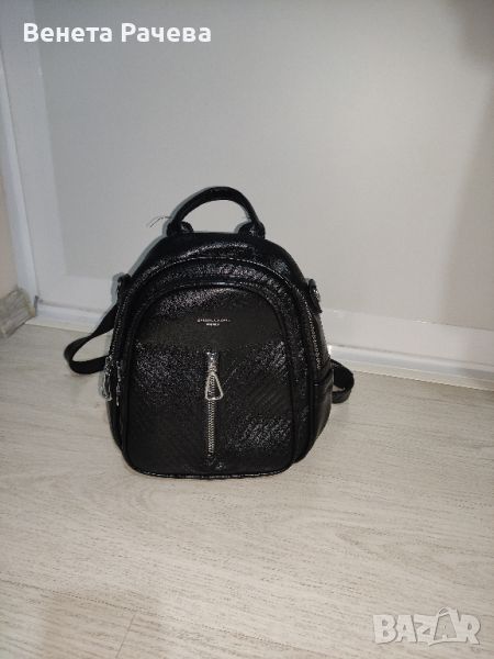 2. Кокетна дамска раница-20 лв. С 1 голям вътрешен джоб,2 малки вътрешни,от които единия със и единия без цип. 1 преден джоб с цип,върху него малко джобче отново с цип (функционално). Малък джоб на гърба с цип и 2 странични малки джобчета без цип. Към нея има и дръжка за носене,като дамска чанта.