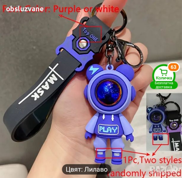 Уникален Ключодържател в три части с висулка Астронавт.