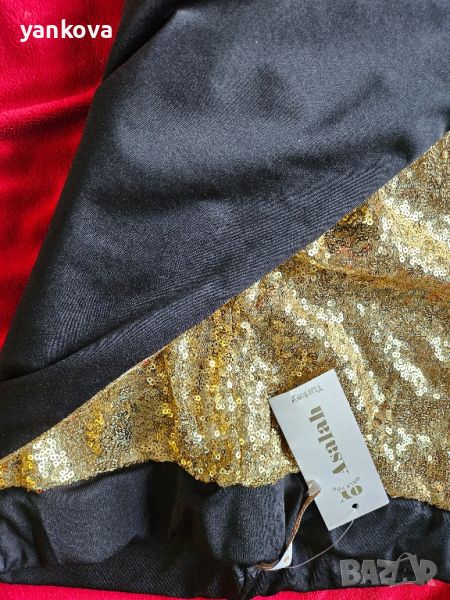 чисто нова блуза и еластичен клин ханш от 90 до 120 см. блузата е с прилеп ръкав и леко оголено рамо.