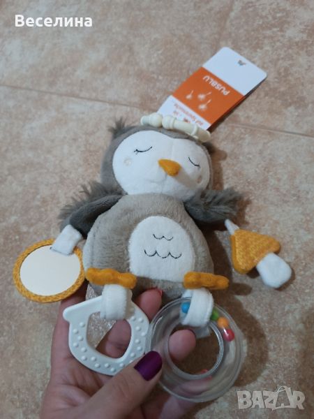 Лот бебешки играчки, дрънкалки, гризалки, сензорни топки и кърпичка за гушкане. Бухалчето е ново с етикет. Има огледалце, дрънкалка, гризалка и шумяща част. Топката също не е използвана, но е махнат етикета. Другите са с нормални следи от употреба. За Пловдив лично предаване. Цена 10 лева.