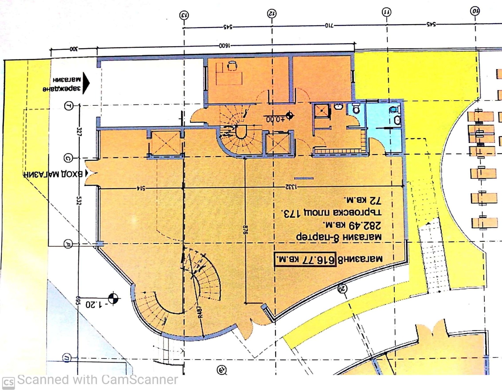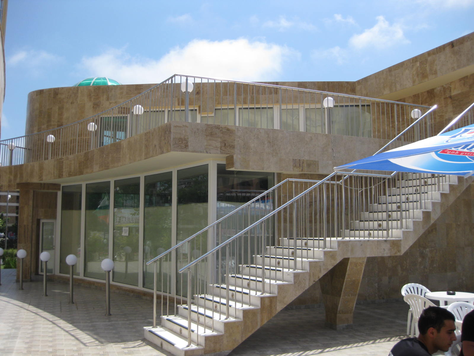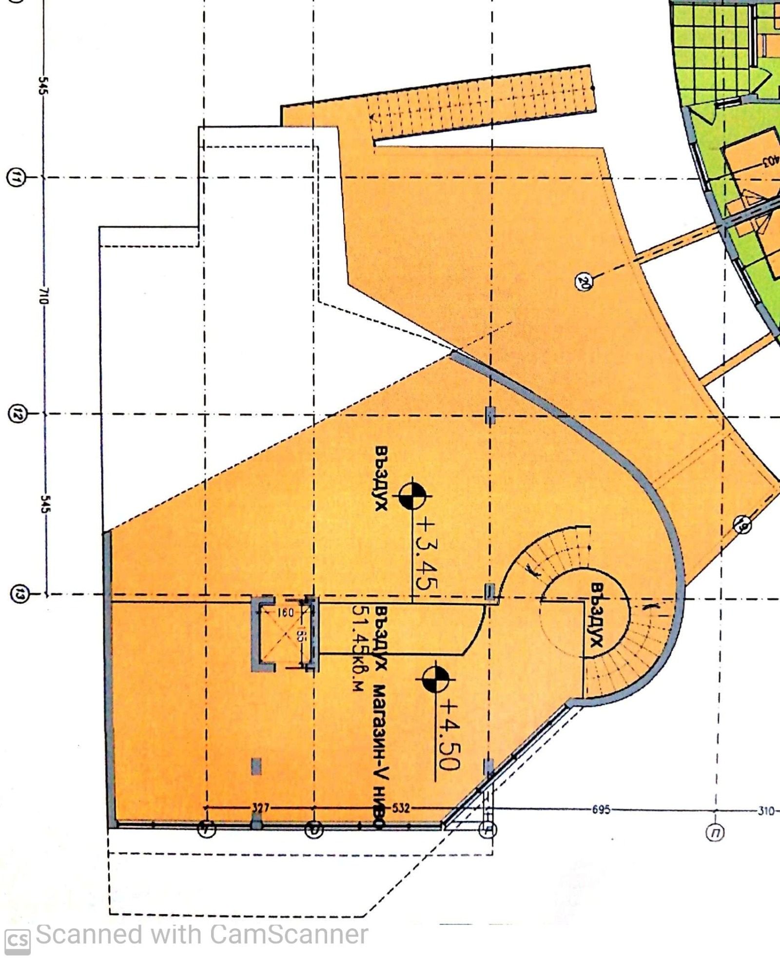 Търговския комплекс е на пет раздвижени нива с витрини към главния път, въттрешни стълби, вход за зареждане.
