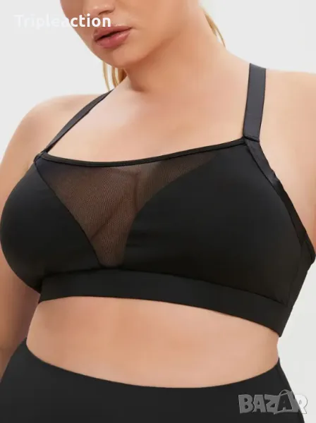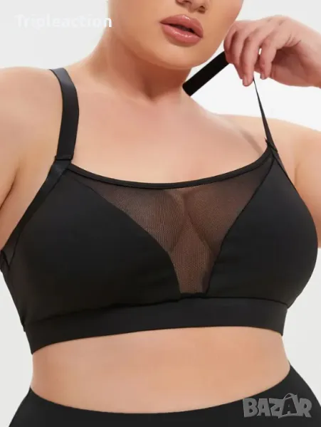 Дамски сутиен с мрежа, голям размер 4XL, Sports Bra, Stretchy Mesh Bra, Crisscross → Обява 45631085