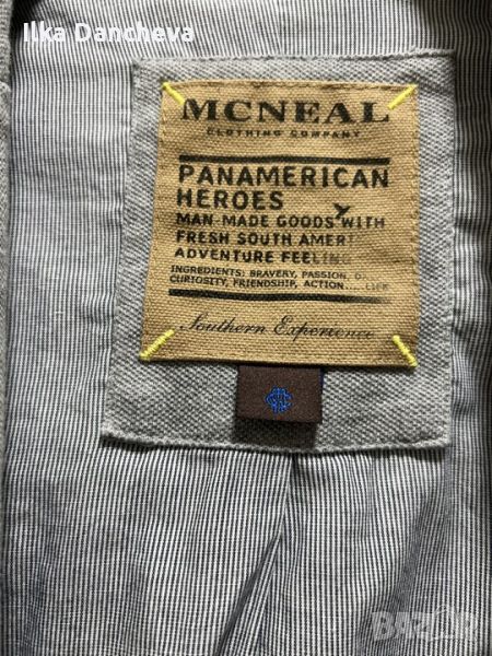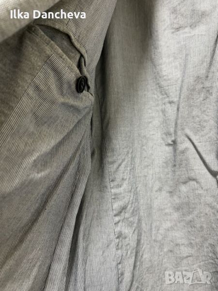 Продавам сиво мъжко сако от трико с хастар. Размер L/XL. Сакото е много малко обличано. С два джоба вътрешни и два - външни. Размери: рамене - ширина - 51 см; подмишници - ширина - 59 см; дължина на сакото - 79 см; ръкав - дължина - 67 см.