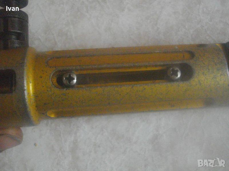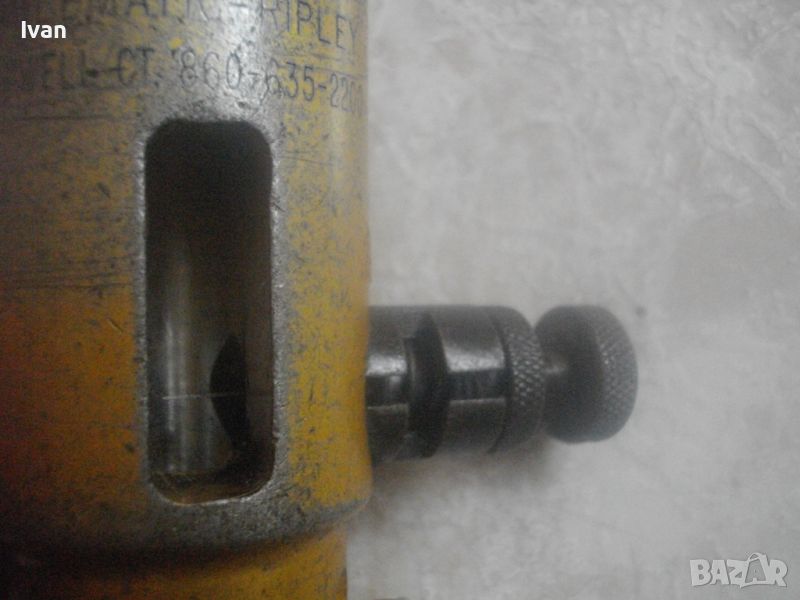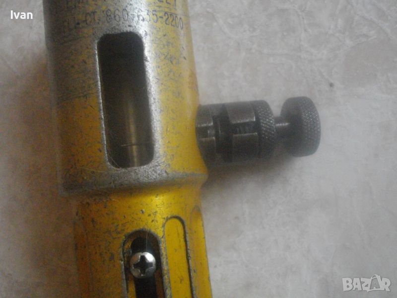 .ОПИСАНЕ на жълт инструмент за оголване на кабел - цена 99 лв. Професонален. Нов в момента се предлага по разлини световни сайтове на цена 275 долара. Инструмнта от обявата е ползван, със запазен външен вид и добро работно състояние. Без наравявания по остриетата. Марка и модел маркировки - RIPLEY 38405 - Coax Stripper New NFP - проиизводител Cablematic. Инструмеента е с цилиндрична форма с отвори от двете си страни за оголване на кабел с дебелина до ф 10 мм. Други маркировки по него - Set Los 5 - Cablematic - Ripley Cromwell - CT 86***********200. Отлично състояние, без наранени остриета. Алуминиев изцяло. Производство - САЩ. Дължина 220 мм, дебелина диаметър ф 45 мм, с отвори за кабел оголване до 10 мм. Регулируема винтова пружина при застопоряване на оголващ кабел. Закалена инструментална стомана остриета. Забелването на кабела става с издърпване. По 1 бр. острие от двата края, по средата на инструмента също 2 стяги за стягане на кабела. Тегло на инструмента - 1,0 кг.