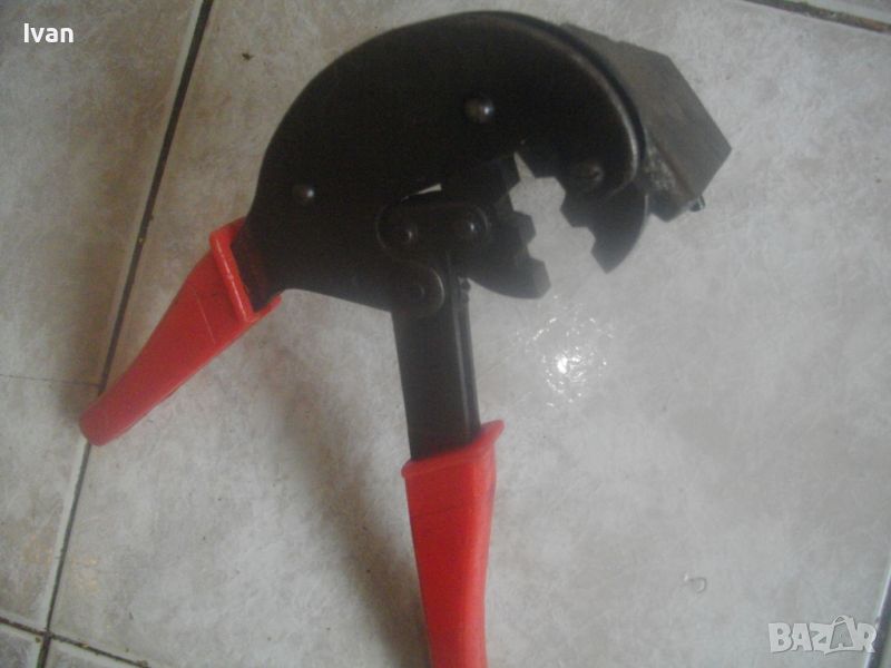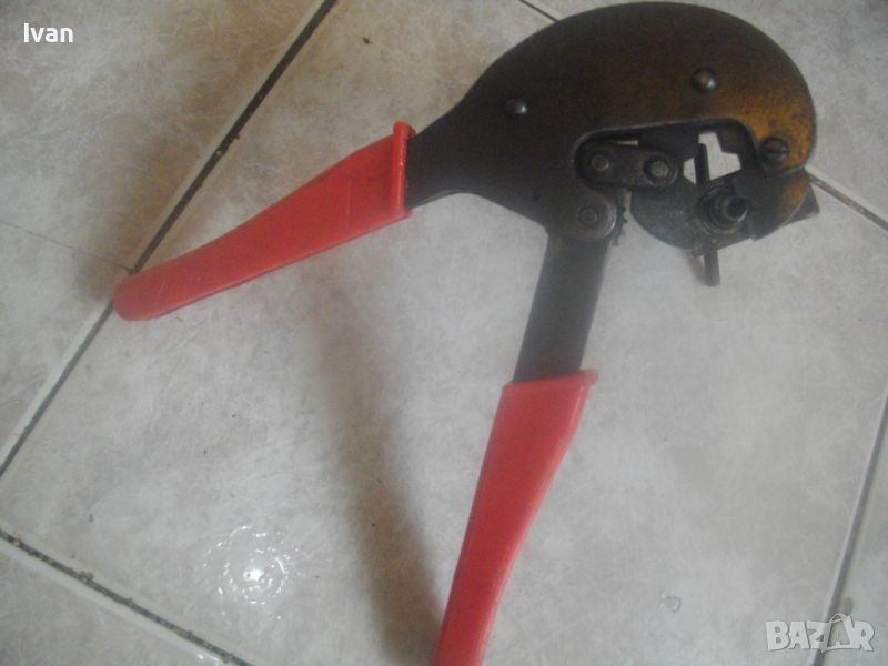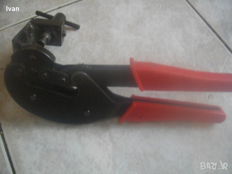 ОПИСАНИЕ на специализирани клещи с червени дръжки - профи - за коаксиално кримпване HT-806 Series Professional Coaxial Crimping Tool - цена 99 лв. Запазен външен вид отлично работно механично състояние. Дължина инструмента - 230 мм, със тресчотъчен зъбен механизъм и приспособление за винтово затягане на кабела. ПВЦ червени вложки на дръжките. Широчина на клещите със стягата приспособление - 130 мм. Тегло на инструмента - 1,2 кг.