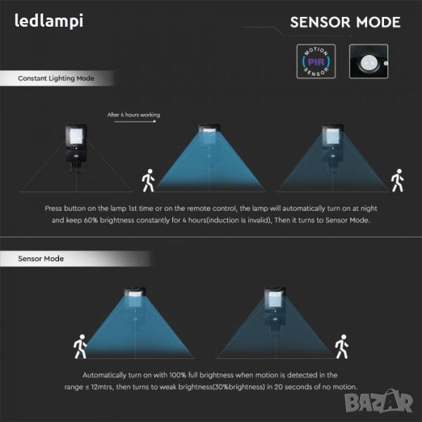Соларно LED Улично Тяло 40W Сензор Дистанционно 6000К IP65 4800Lum