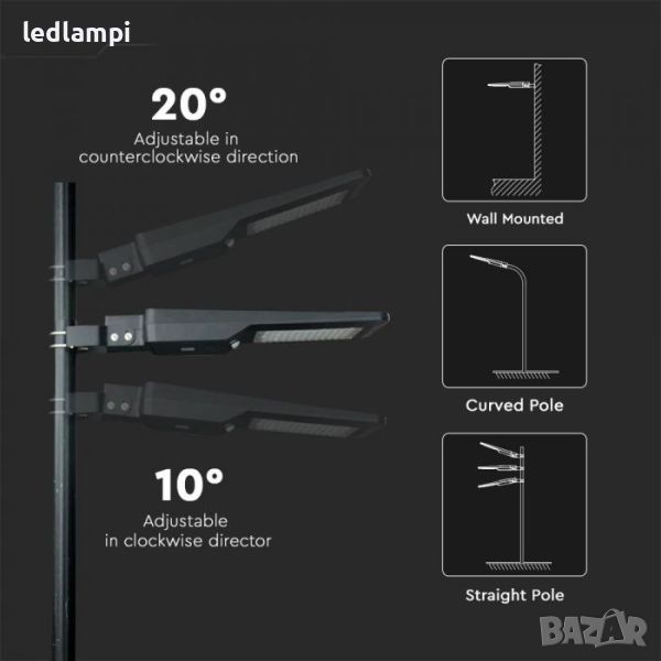 - 3 опционални инсталации - прав полюс, извит полюс и стенен монтаж