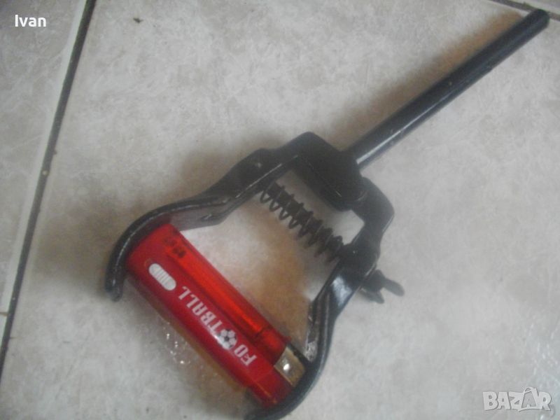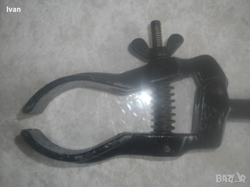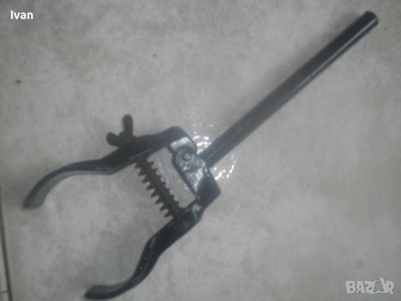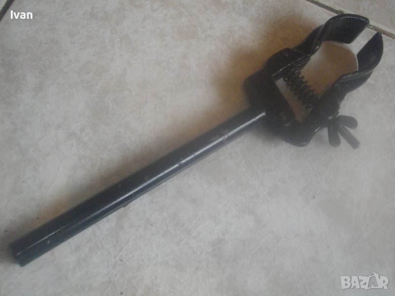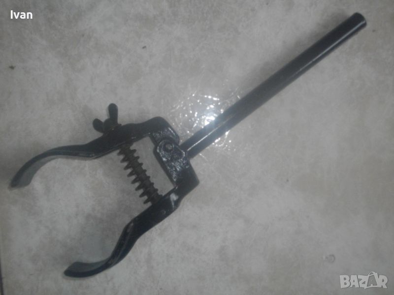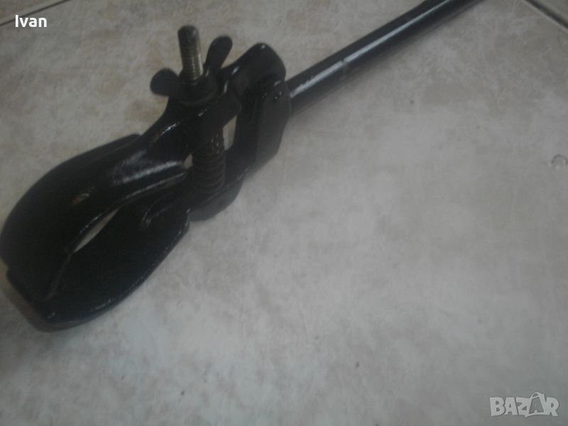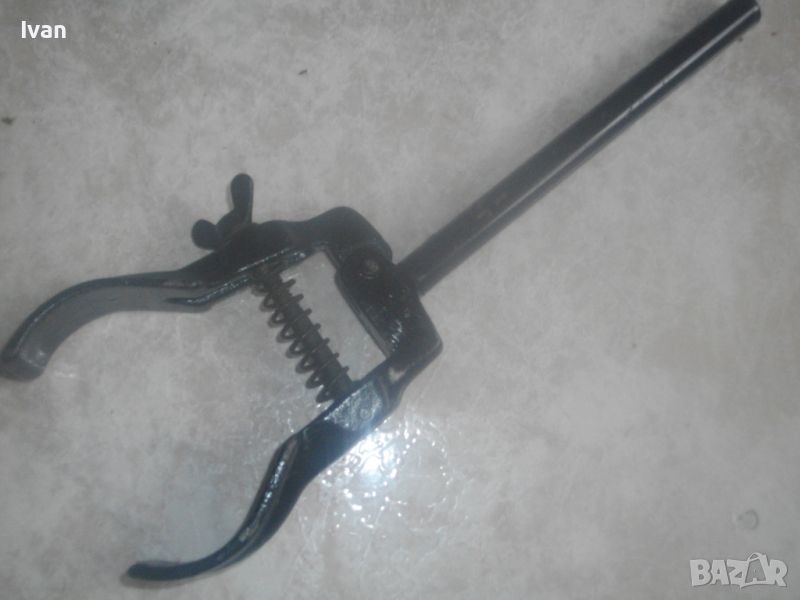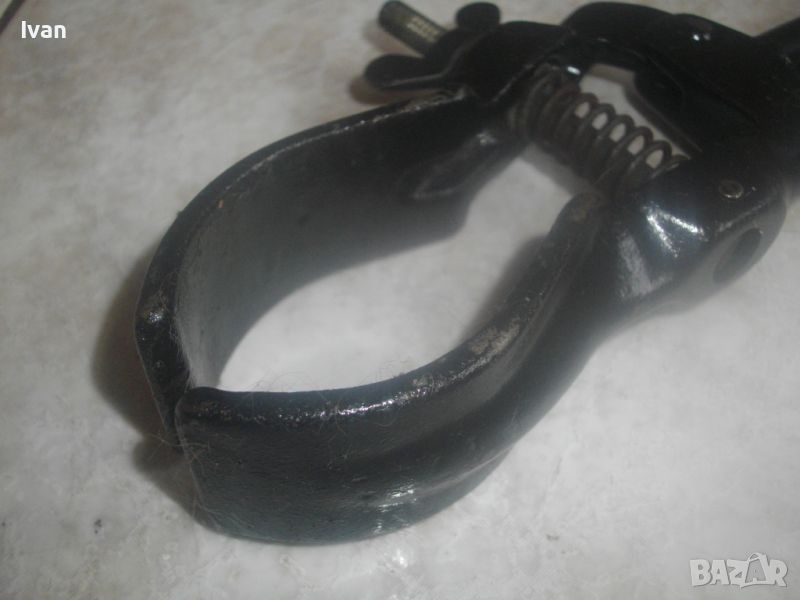 ОПИСАНИЕ на стяга скоба захватна за захват черна - 59лв. Захват до 80 мм. Немски старо качество от стария материал. Тип тенекеджийска - заваръчна. С регулируем захват на отварянето на стягите до 80 мм, посредством винтов крилчан болт със стегната масивна пружина. Дължина на стягата - 260 мм, отваря до 80 мм, Стягата е съвсем нова, неизползвана и неупотребявана, с оригинална си черна боя. Маркировка за модел - J 1722.. Дължината на челюстите на стягата за захват назад към тялото на инструмента е 70 мм. Стягата захваща детайли с размери макс 80х70 мм. Тегло на инструмента - 0,8 кг. Твърда цена 59 лв.