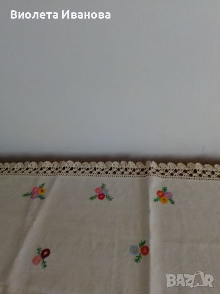 Тишлайфер от ленена панама с ръчна бродерия и плетиво на една кука, цвят екрю. Размер 95/65 см.