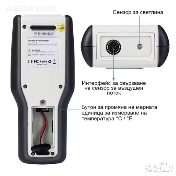 Професионален анемометър за измерване скорост, обем и температура, 20214263