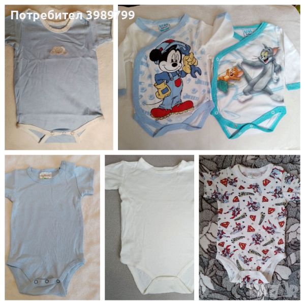 Лот дрешки за малко бебе момченце от 0 до около 6м. Запазени, без скъсано. Някои са съвсем нови (без етикет) и не са обличани. Лотът включва: