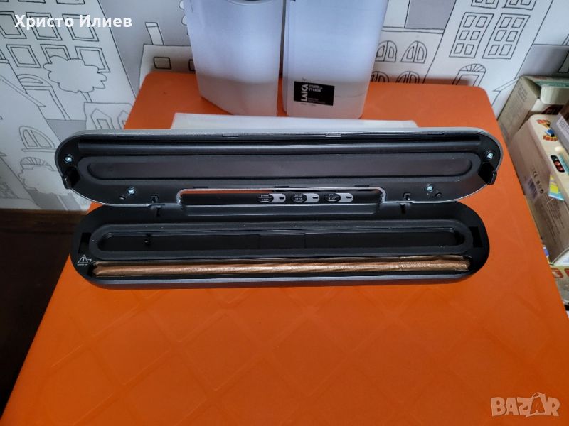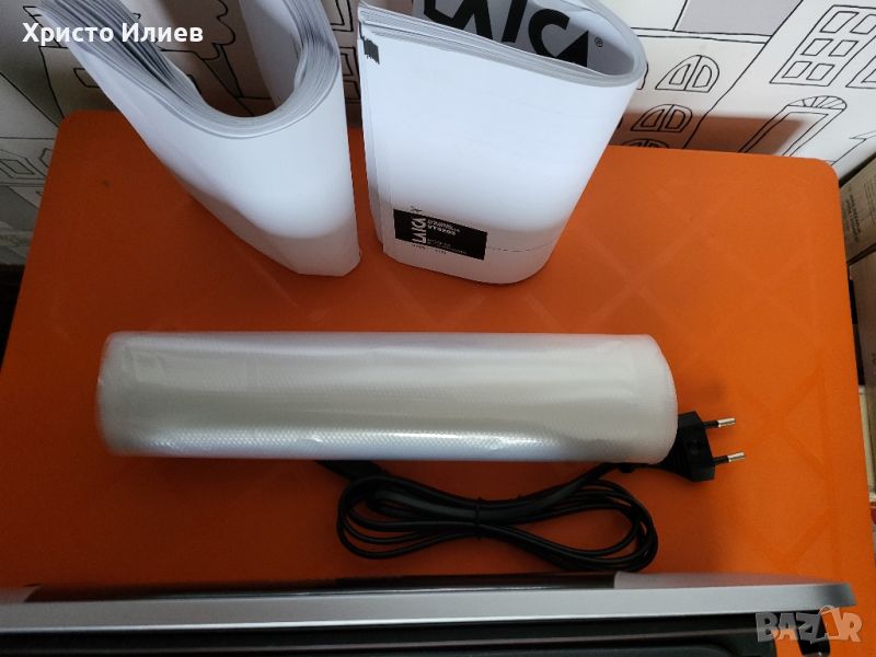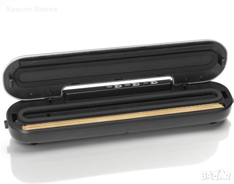 вакуум машина.Вакуум около 90% при -0.6 bar.бързина на изсмукване 9 л / минРегулиране на вакуумирането със стоп бутон, идеално за чуствителни храни.Включени консумативи: във всяка различна партида консумативите са различни.Резач за ролкиМагнити за захващане към метална повърхностДо 5 пъти по-дълъг период на съхранениекомпактен дизайн, регулиране на вакуума: с бутона за спиране регулирате вакуумната сила – идеален за чувствителни стоки, отделна функция за запечатване.Ширина на пликовете/ролките макс. 30 смидеален за порция и дълго съхранение на храна или готвене à la sous vide.Мощност 90W 230 V, 50Hz.Материал на корпуса: пластмасаРазмери 12.5 x 37.3 x 6 cmТегло 1.02 кг.