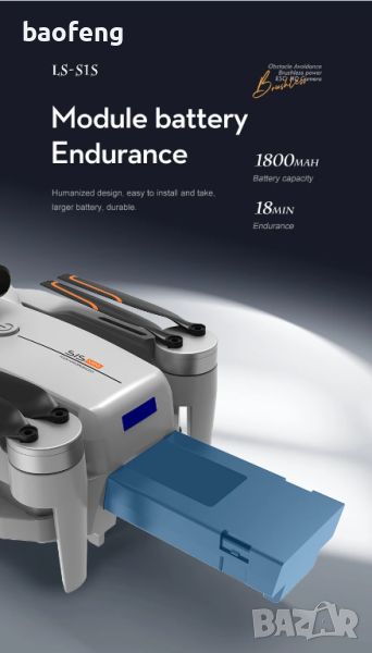 Модулен дизайн с двойна батерия, дълъг живот на батерията, работа, капацитет от 1800 mAh, тест реално може да лети за около 10 до 15 минути
