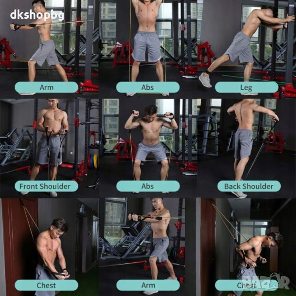 Комплектът, който Ви предлагаме е един чудесен начин за трениране на различните части по тялото. С ластиците от латекс, включени в него, Вие ще имате възможността да натоварвате различни мускулни групи. Използват се за тренировка и в домашни условия, защото са идеален помощник за всякакви видове упражнения и то за няколко минути. Латексовите ластици за тренировка са в различни цветове според натоварването, за което служат. Позволяват тренировка на различни части на тялото с около 100 упражнения и то докато сте в парка, във фитнеса или у дома.