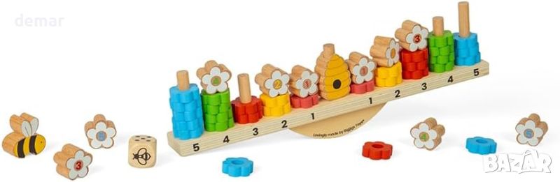 Bigjigs Toys Bee (44 бр.) - дървени игри за подреждане и балансиране