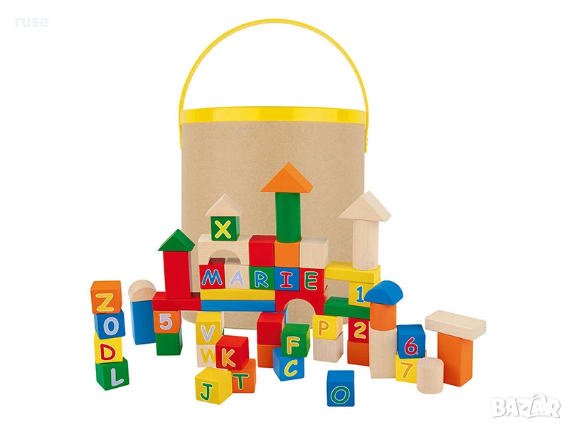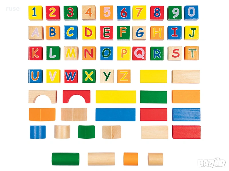 НОВИ! Дървен конструктор Букви и цифри, 58 части