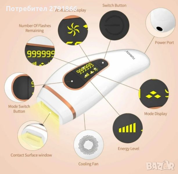 TURATA IPL система за епилация, постоянни безболезнени 999 999 светкавици, регулируема двурежимна светкавица, професионален лазерен депилатор за жени, мъже, за лице, подмишници, бикини, крак, гръб, тяло у дома. Състоянието е чисто ново.