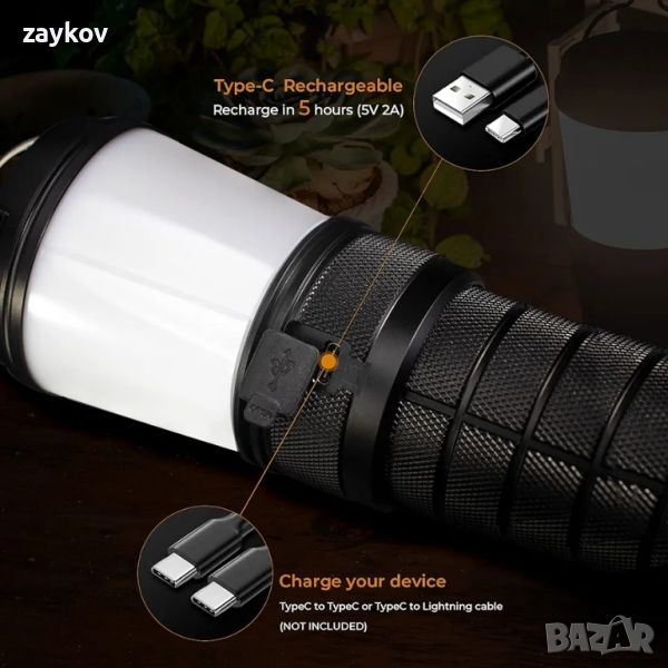 Гъвкаво фенерче: С USB-C кабел за зареждане, 4* батерии, максимум 5V 2A захранване, може да зарежда вашите мобилни устройства, като телефон, което го прави идеален кандидат за прекъсвания на електрозахранването, спешни случаи.