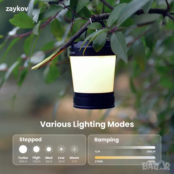 1.360° Яркост: оборудвана с 40 отделни LED крушки, предлагащи 360° осветеност. Лесно осветява цялата стая или палатка, но не заслепява, когато се гледа директно.