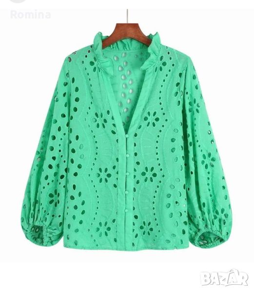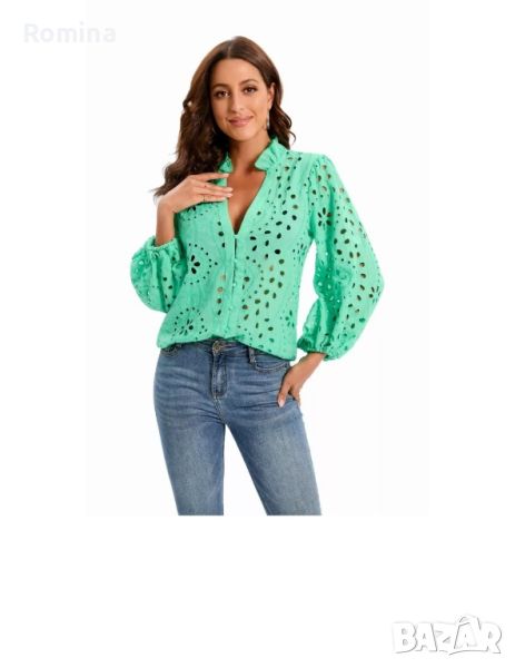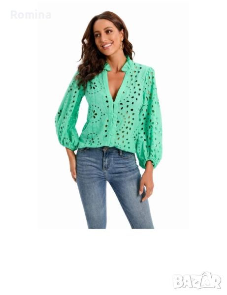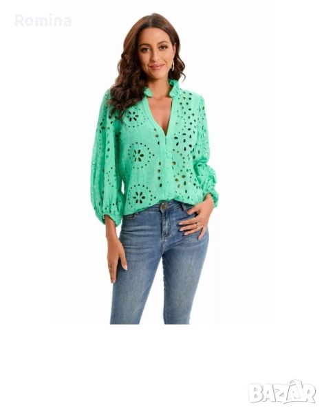 Супер елегантна дантелена риза с бродерия.Цвят зелен.Наличен размер С