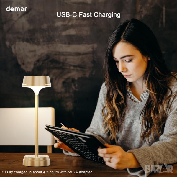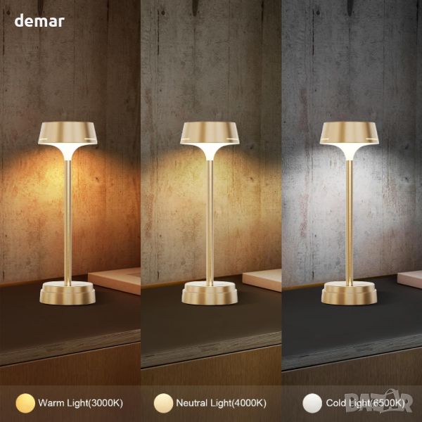 GOVSSING Настолна LED лампа 5200mAh акумулаторна, 3 цветни режима, димируема, таймер, златисто
